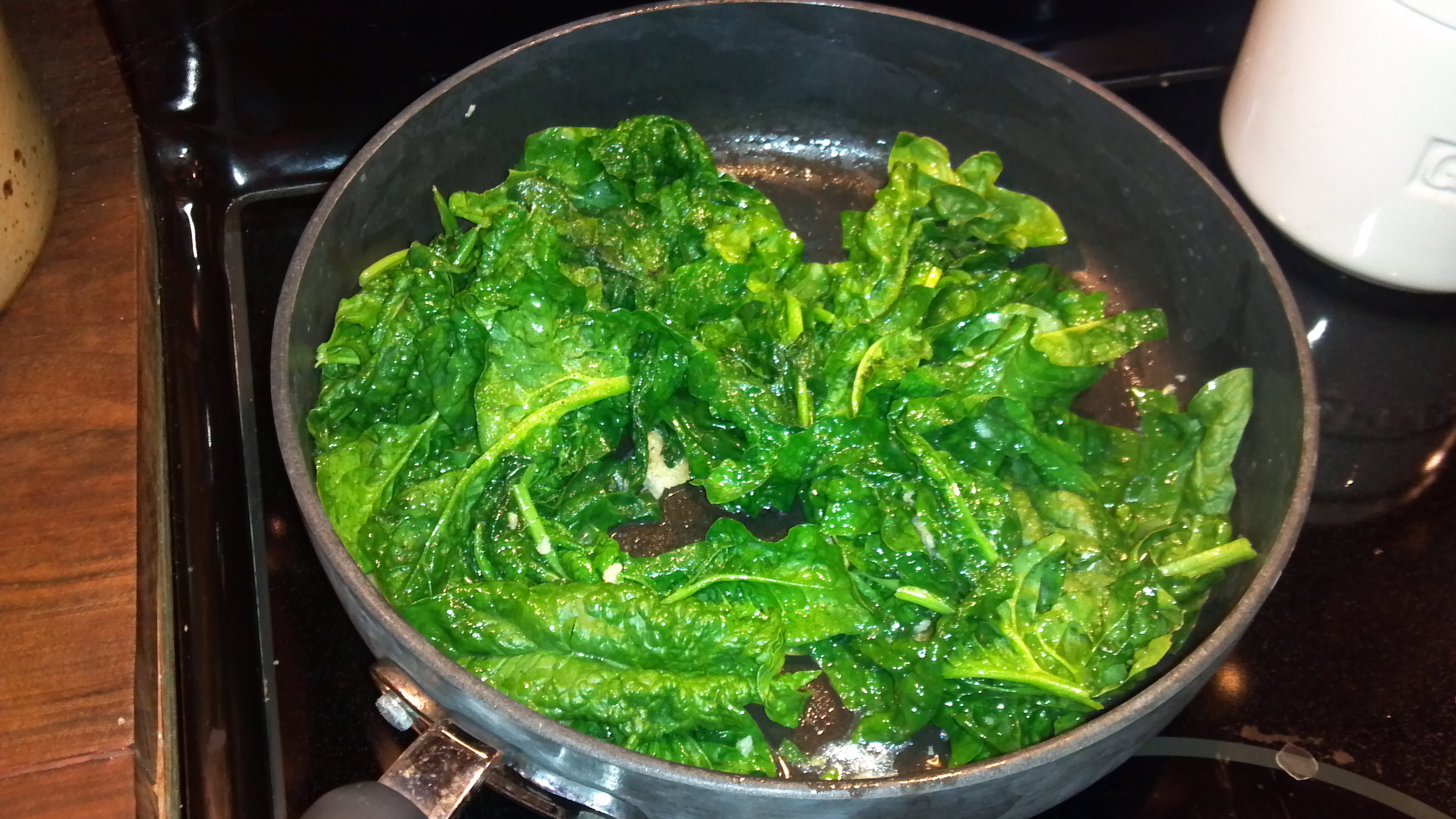 I made this delicious (and easy!) recipe from The Pioneer Woman many times this spring. Basically all you do is add 2-3 Tablespoons of olive oil to the skillet, add TONS of freshly minced garlic, heap the skillet with fresh spinach (and I mean HEAP … it really cooks down!), and cook for less than a minute. I should be just starting to wilt, but a tiny bit crispy. Add a little salt and YUM! Got a healthy does of iron many times from this little gem!