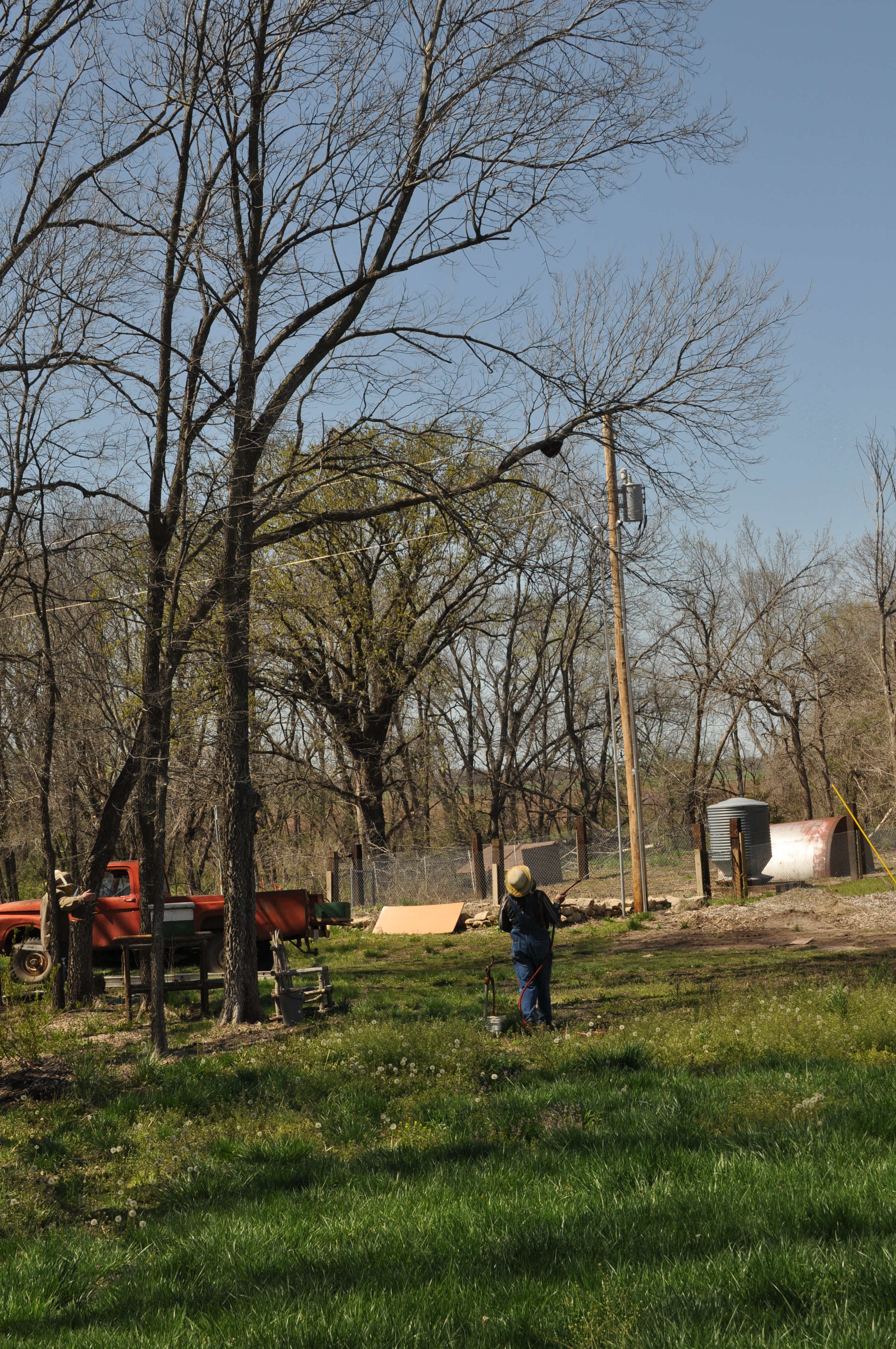 See that black thing way up in the tree? That’s bees. A solid bee swarm. I had never seen anything like it.