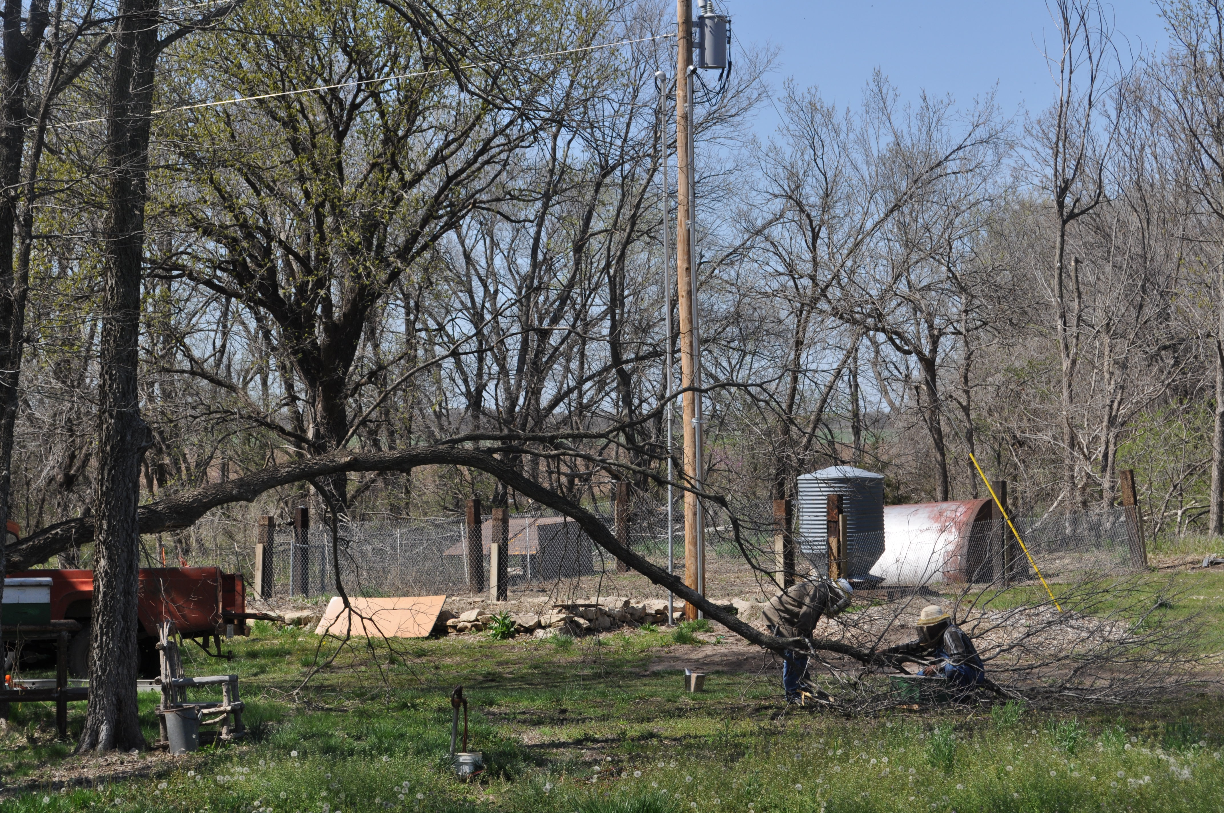 The tree came down, and Gage and Richard lured them into a hive. Amazing.