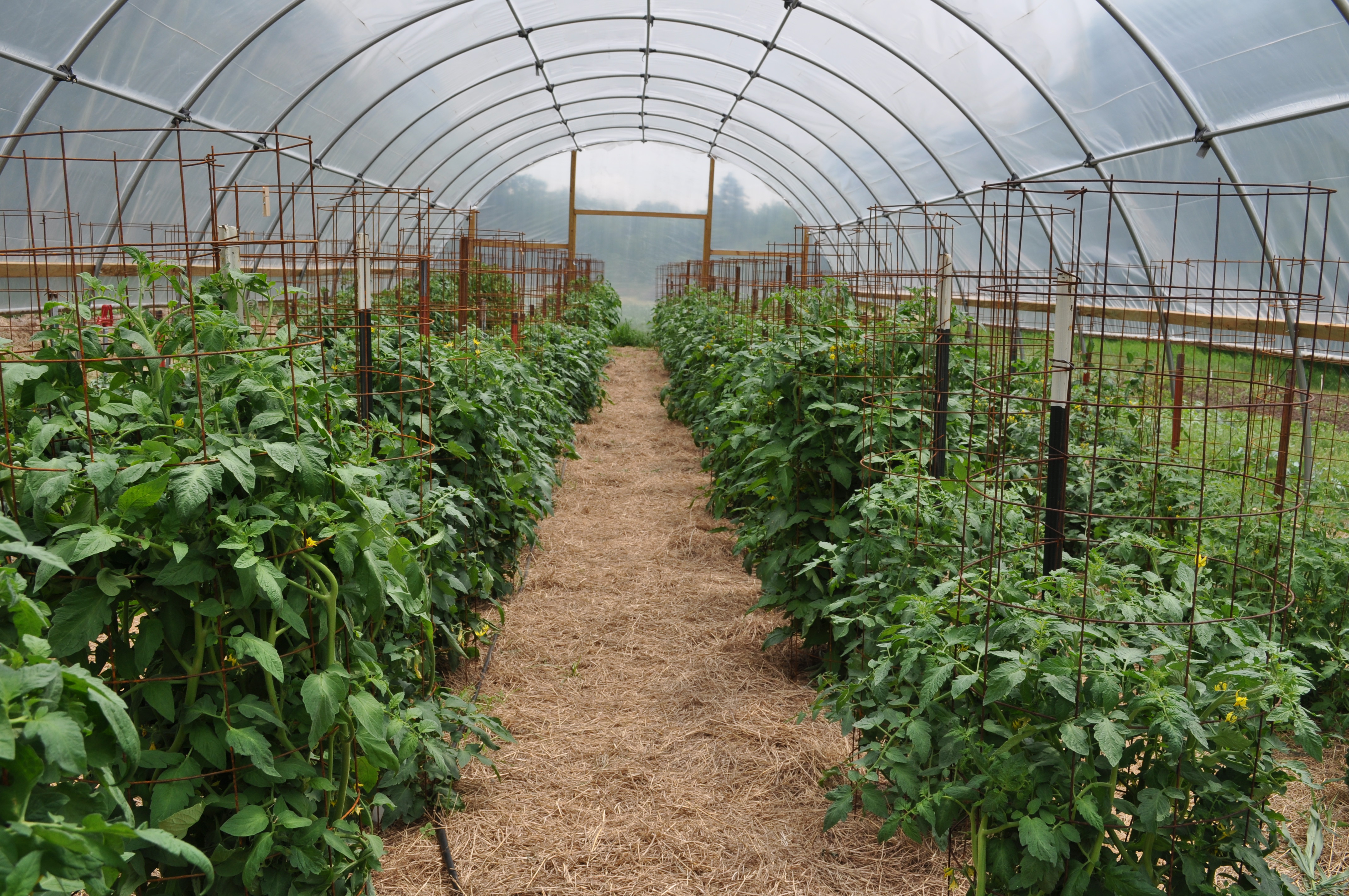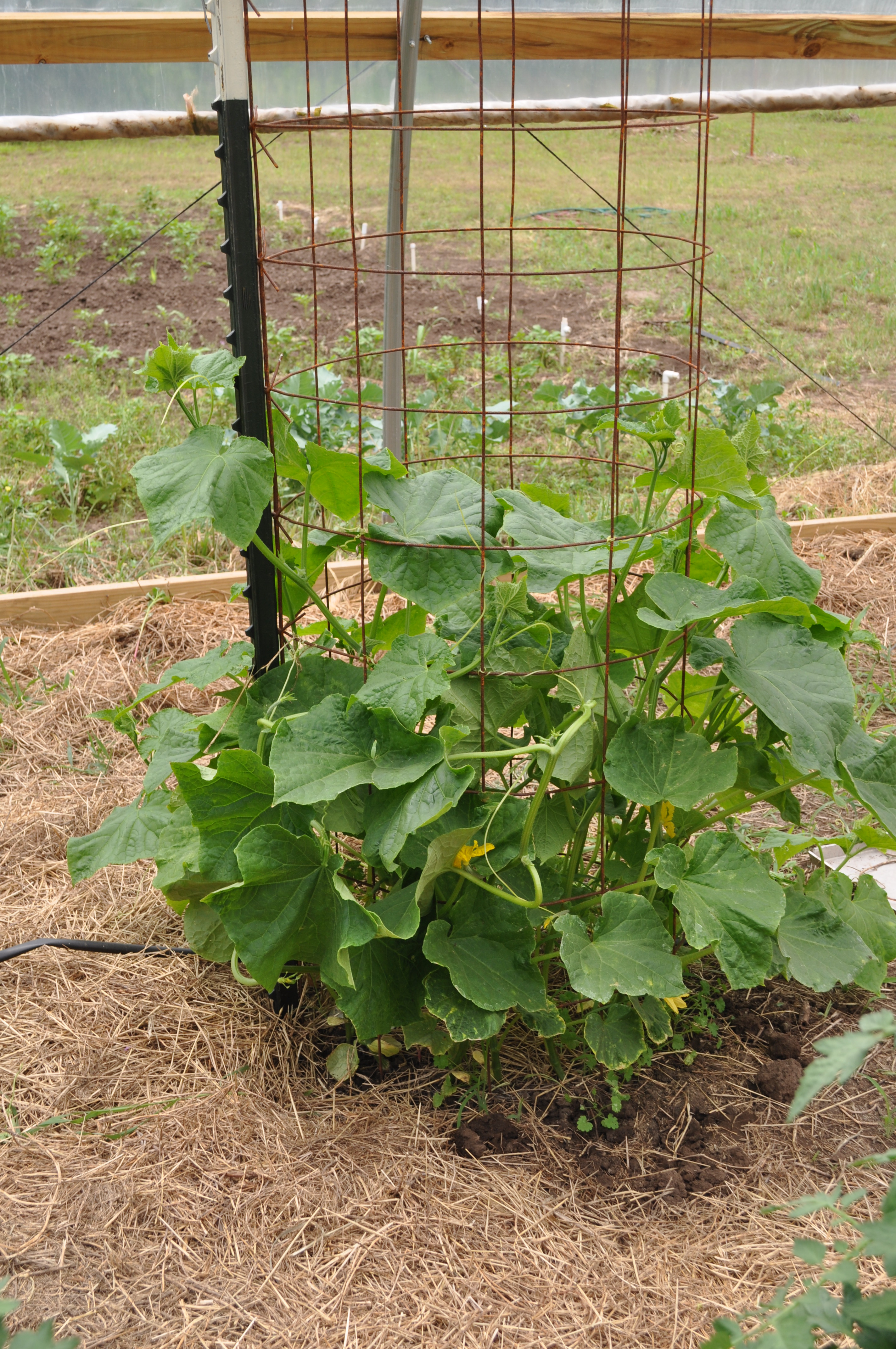 In the meantime, we are adding cages on top of cages for the mammoth plants we have in the high tunnel.