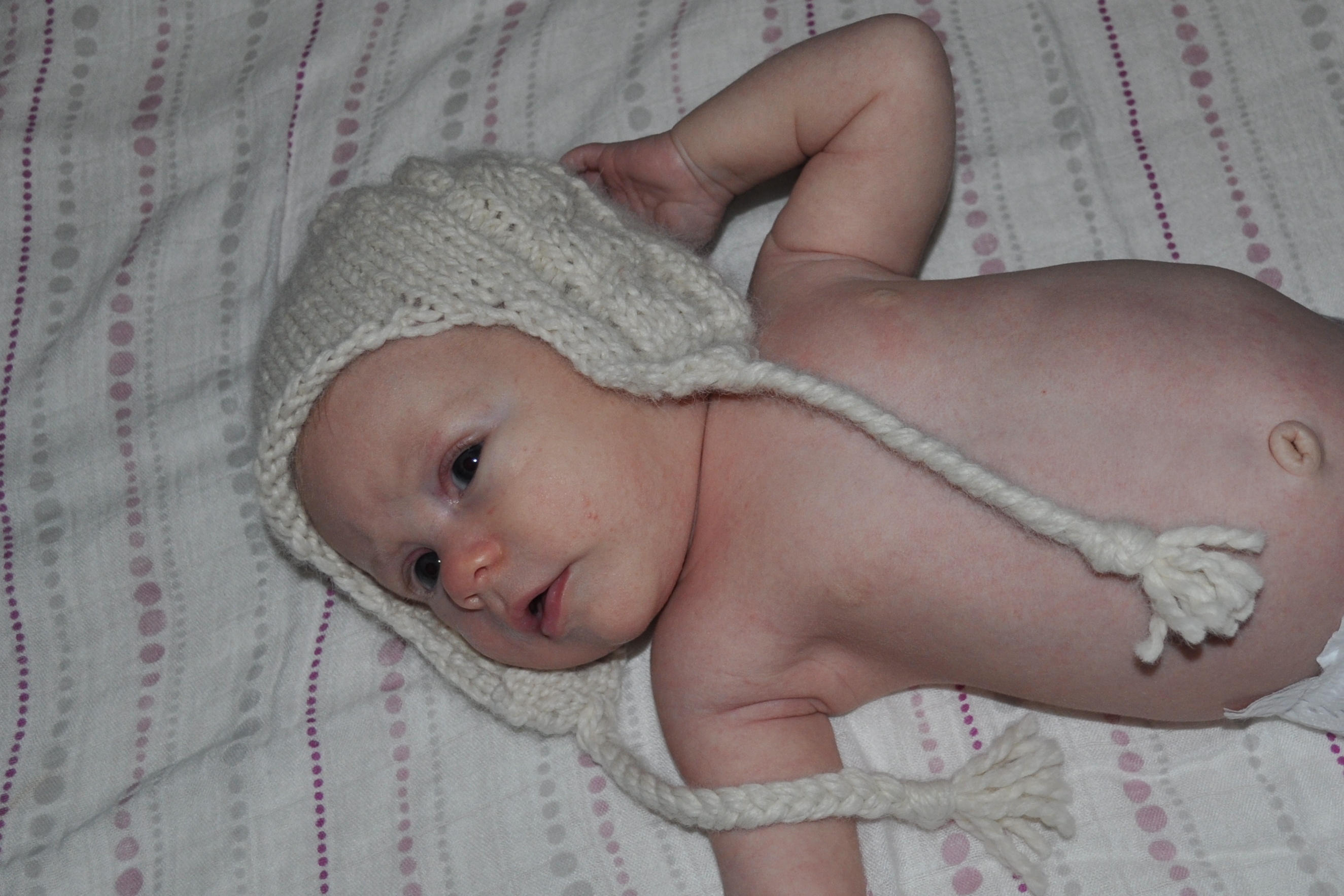 Since I took these pictures a month and a half ago, the hat is obviously too small by now. Which means another one in the works soon. But it sure was cute as a photo prop!