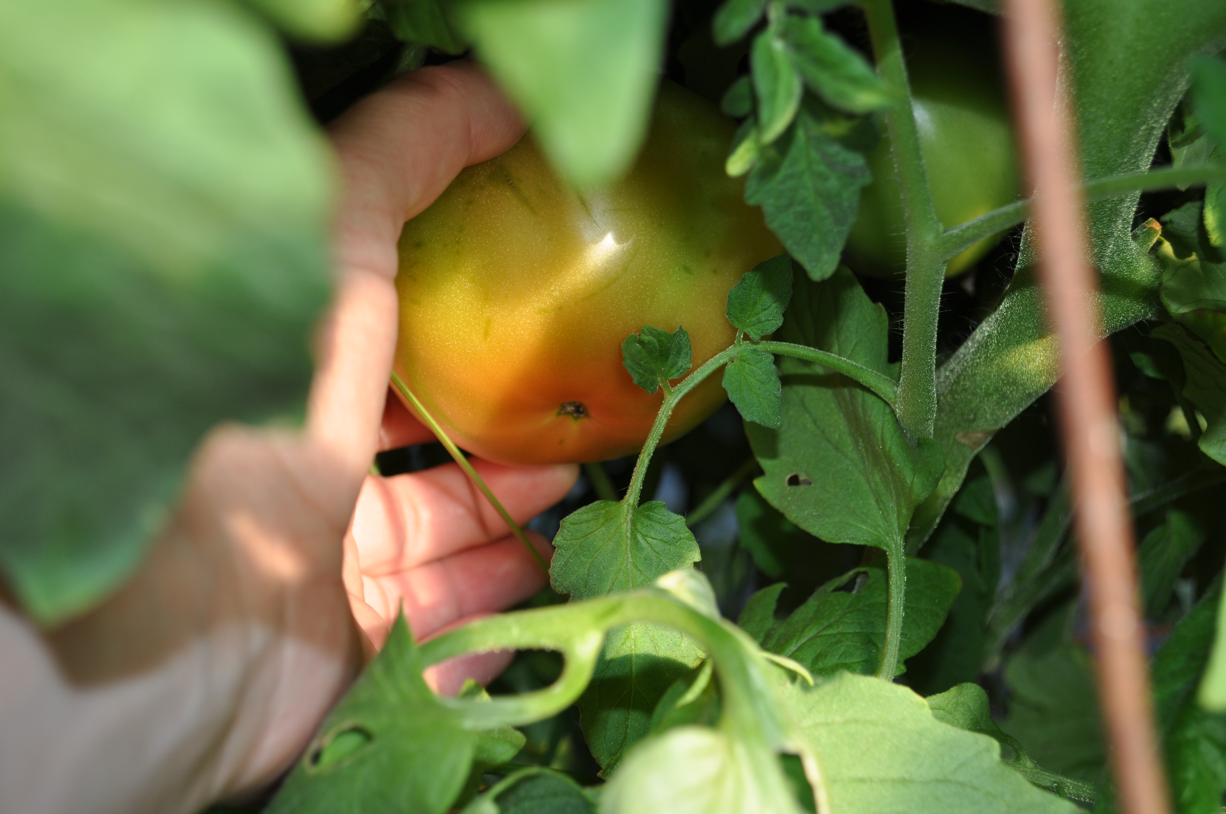 Another tomato, blushing on the vine, almost ready to pick! Get ready!