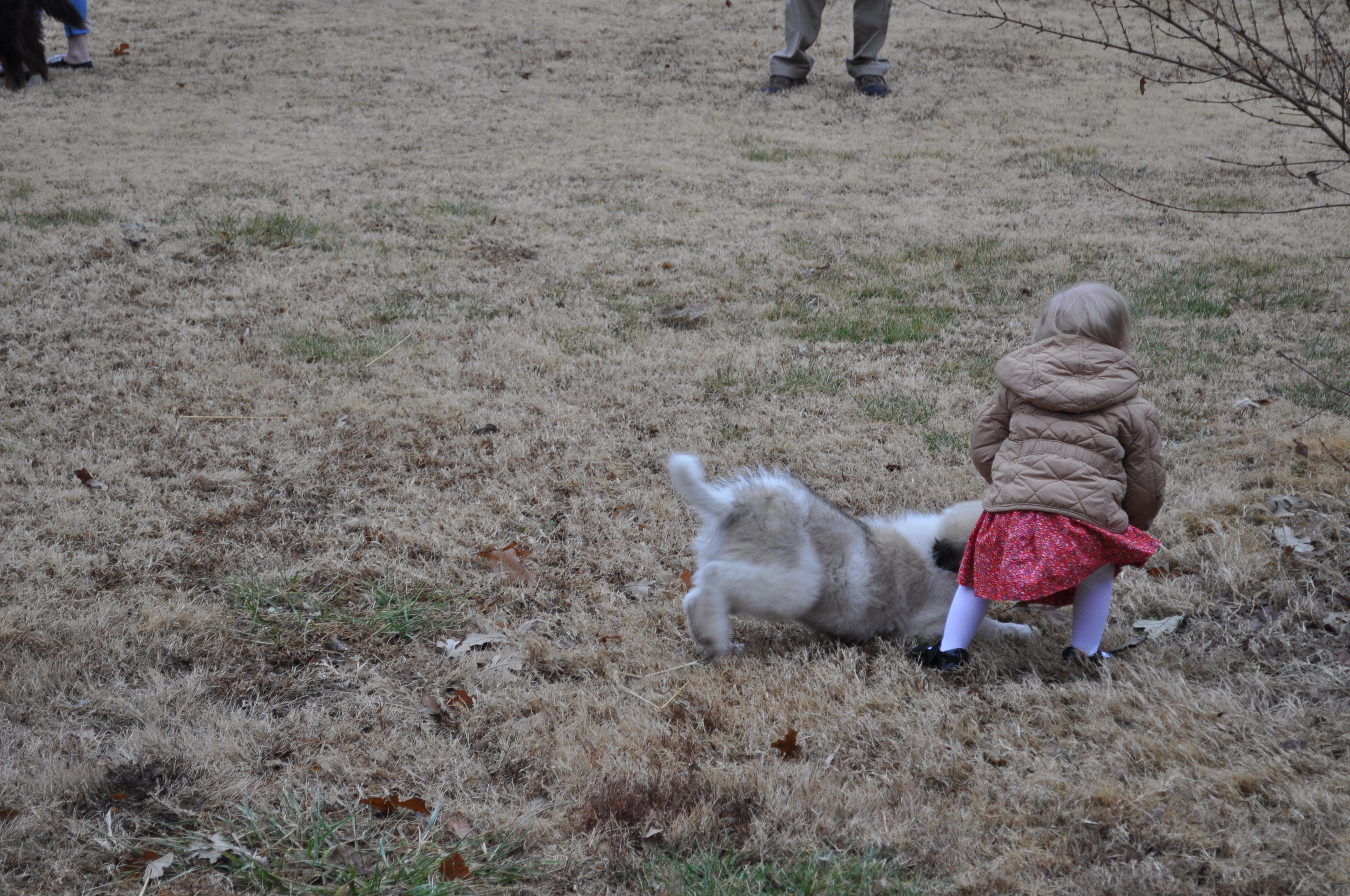 Jack Jack loves the kids. Maybe a little too much. He will NOT leave Willa alone. It is pretty cute. Even when he plants himself right in front of her so she falls over him.