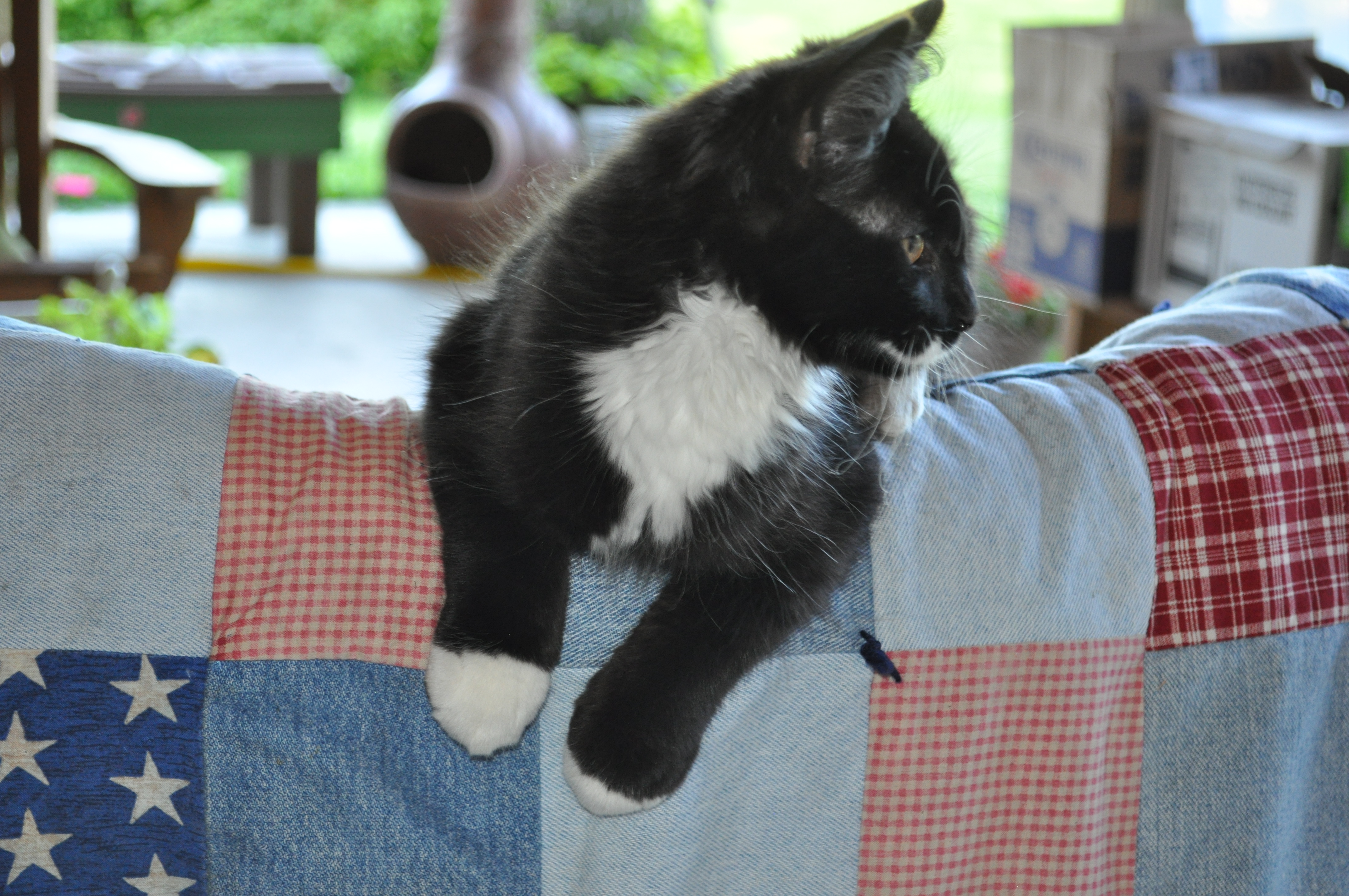 He is a total spaz, but we like him. He has been known to alternately jump into fire pits, and jump into outdoor showers. He may not be the brightest cat we have ever had, but he sure is entertaining. 🙂