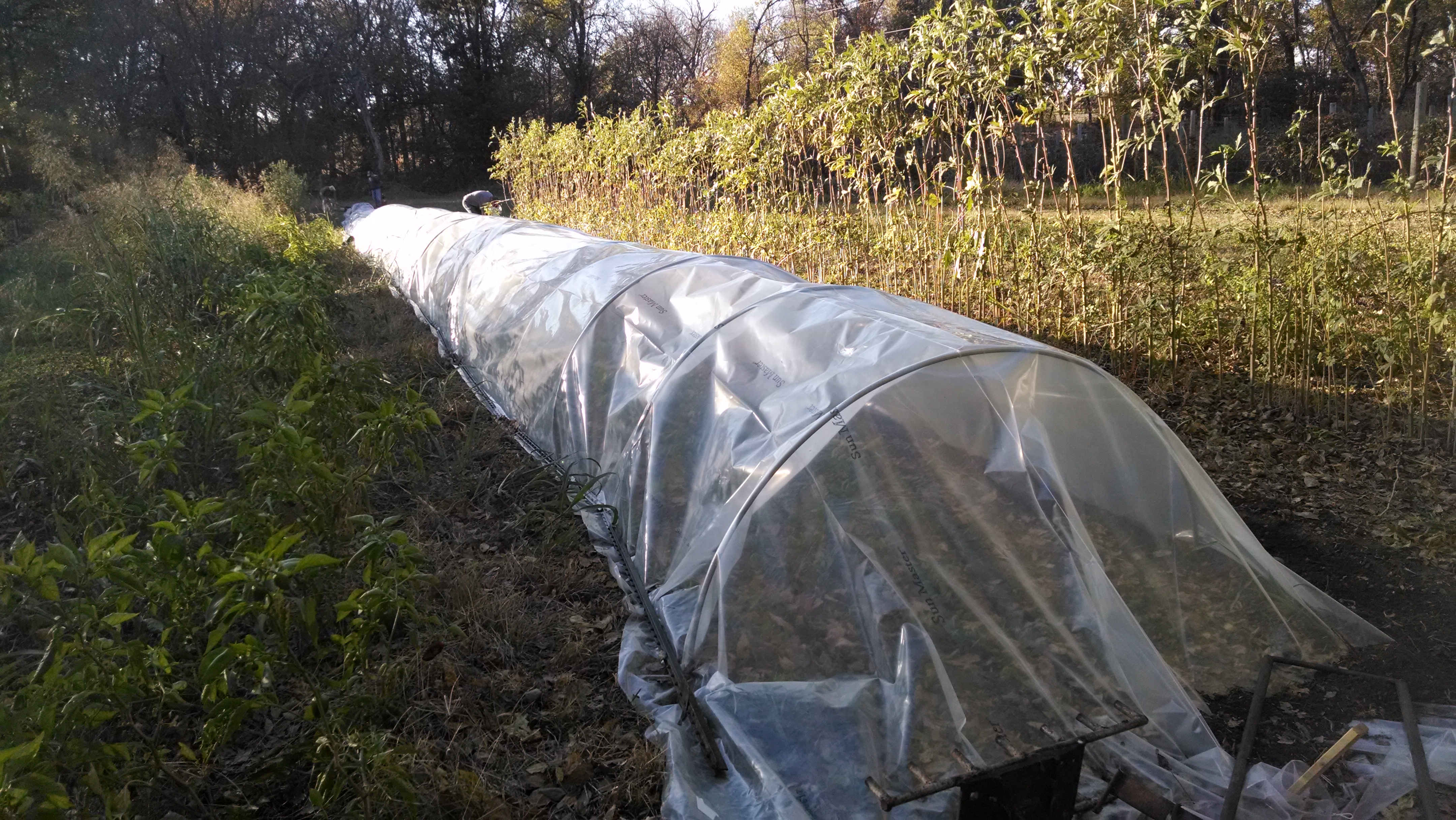 Experimenting this year with the low tunnel we got from the Kansas Rural Center. So far, we have been enjoying carrots, spinach, lettuce, and hopefully soon – cabbage.