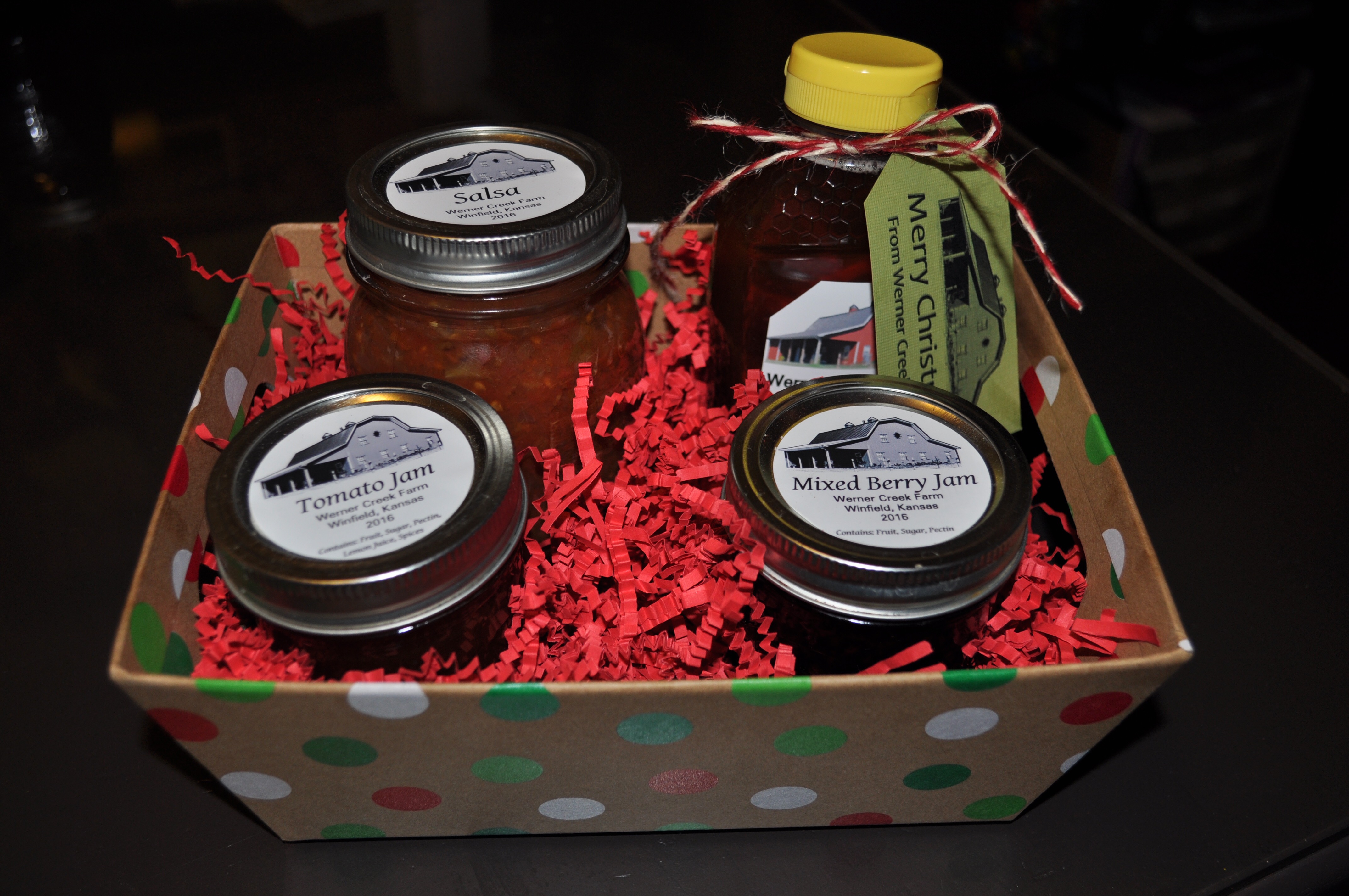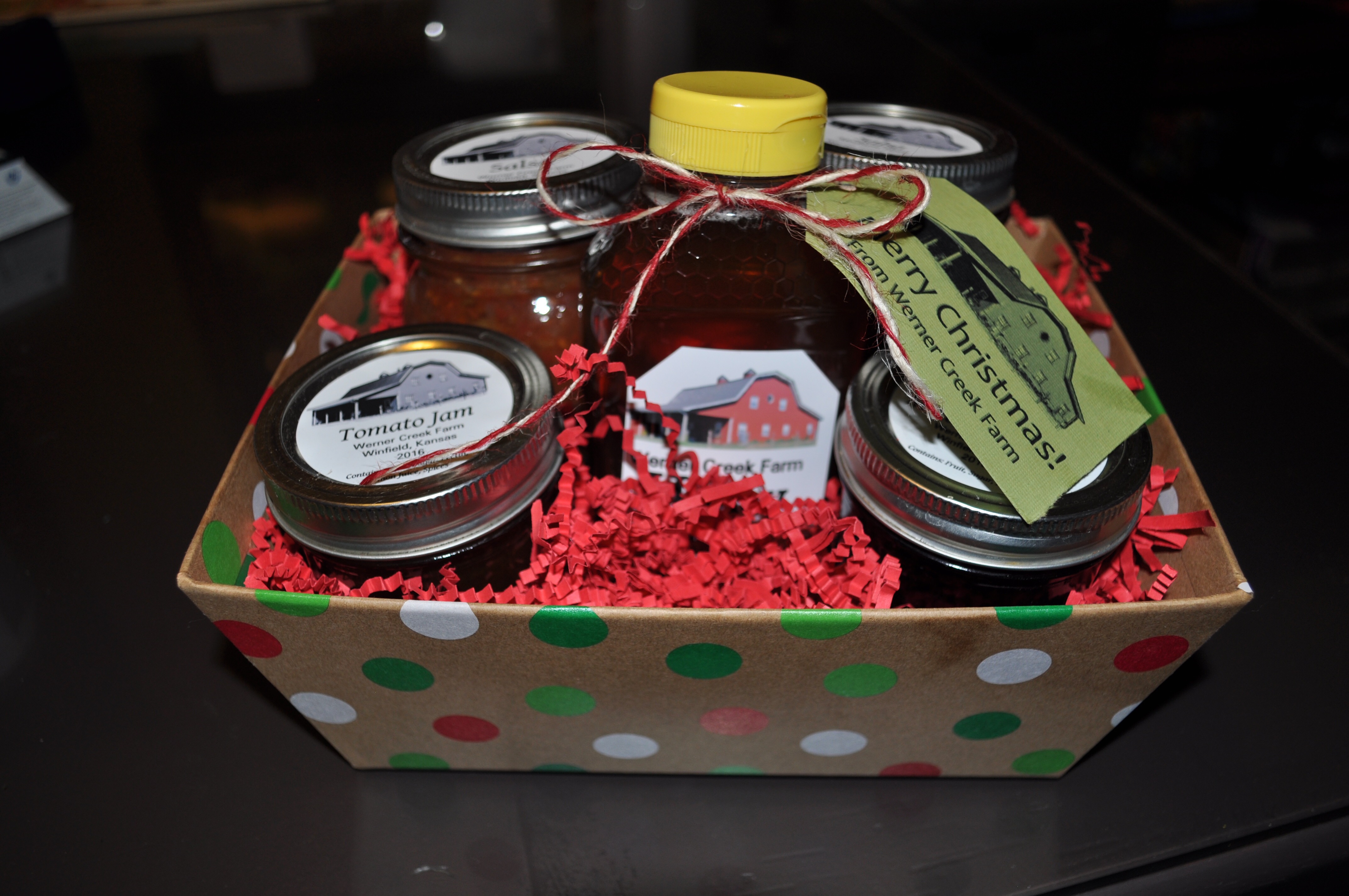 I know, I know, Thanksgiving isn’t even here yet. But, for the early Christmas shoppers, we are now offering Werner Creek Farm Christmas gift baskets! Pictured above is the deluxe basket for $35 and includes: