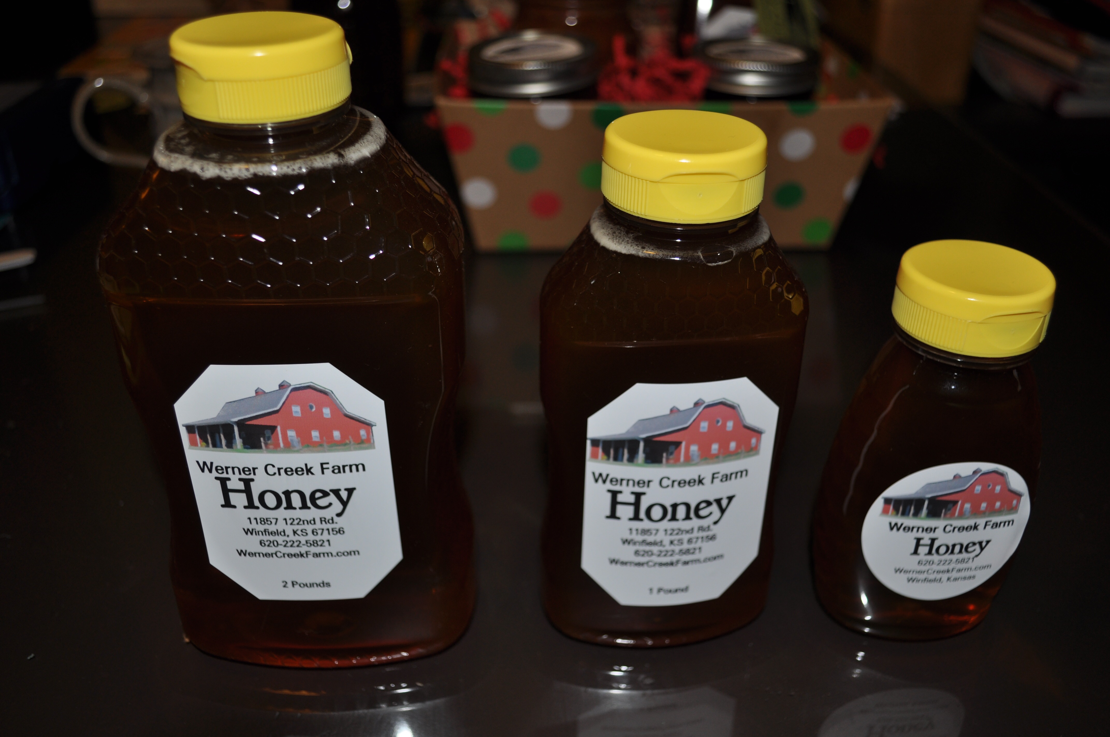 Honey also makes a great gift by itself! New this fall are our 1/2 pound jars (on the right), which are perfect stocking stuffer size.