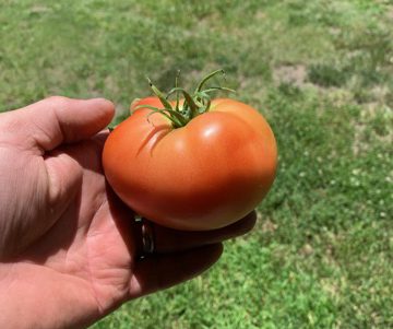 That’s right! The first tomato of the year, picked just this morning. Willa already called dibs for a BLT. The girl has good taste!