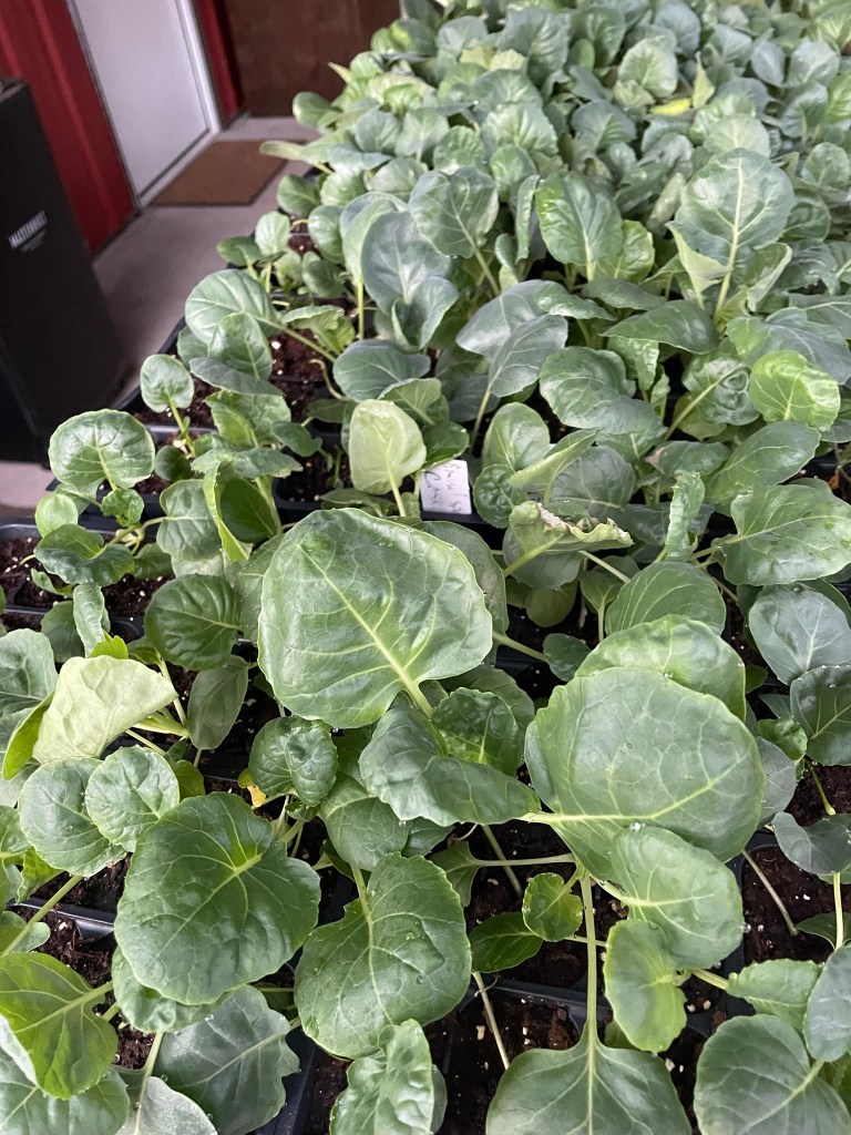 Speaking of what’s coming next, we have these beautiful starts all ready to go in the ground this weekend: Romaine lettuce, broccoli, cabbage, and brussels sprouts. A few weeks ago, we planted spinach, radishes, more lettuce and broccoli that is just starting to pop after last week’s rain.