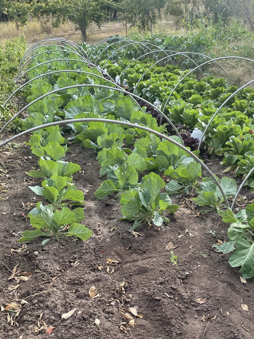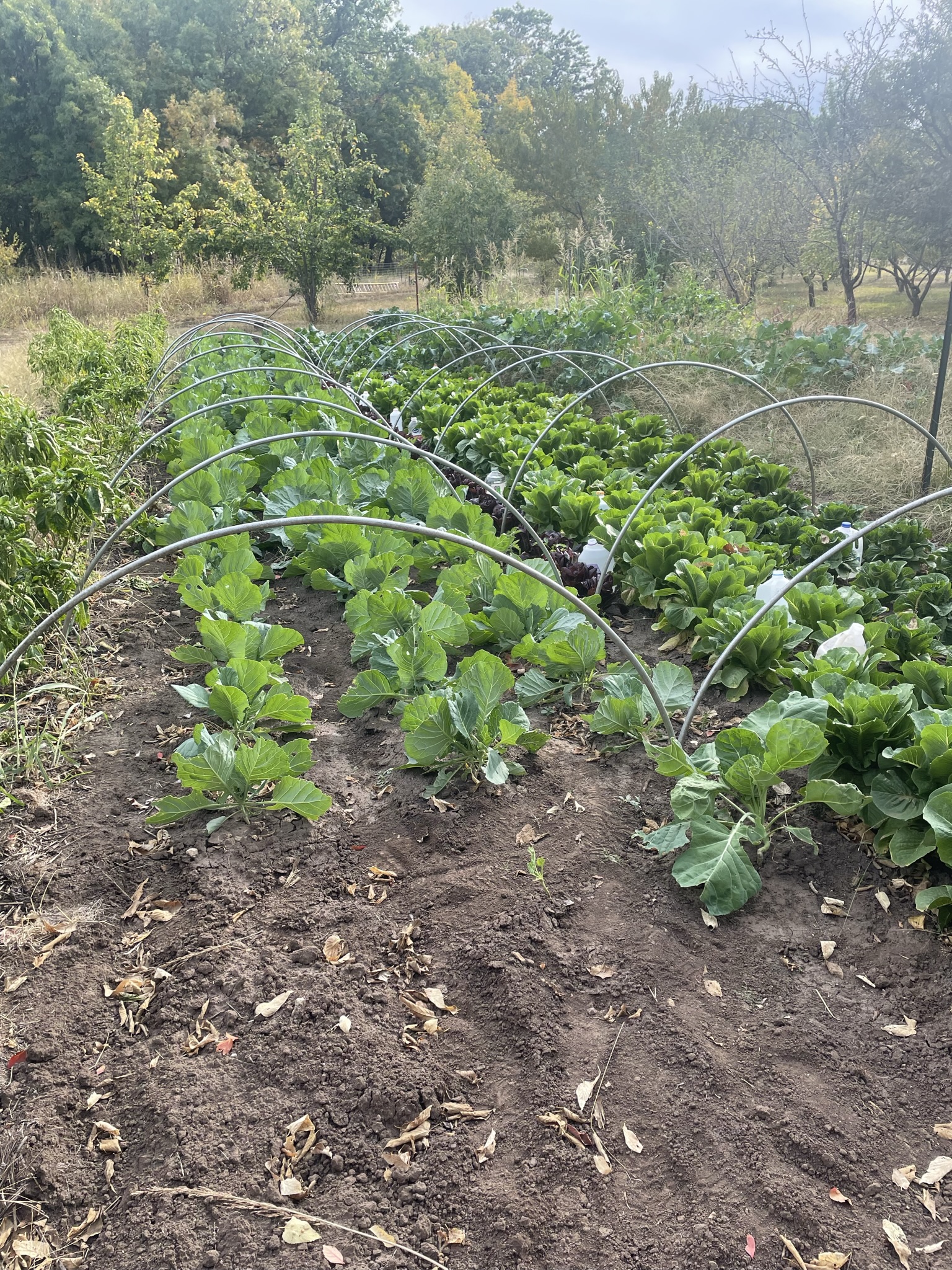 All field tomatoes, peppers, and okra are done for, but we covered the low tunnel hoops (pictured above) over our lettuce and cabbage with plastic and they came through just swimmingly. Still waiting (and waiting, and waiting ….. ) for some rain to help germinate some spinach and carrots we hope to grow this winter.
