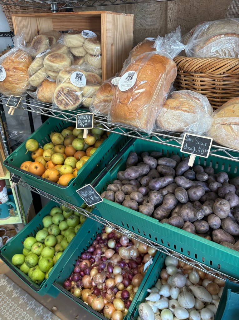 - Fresh sourdough, wheat and rustic breads, pies, cinnamon rolls, and English Muffins